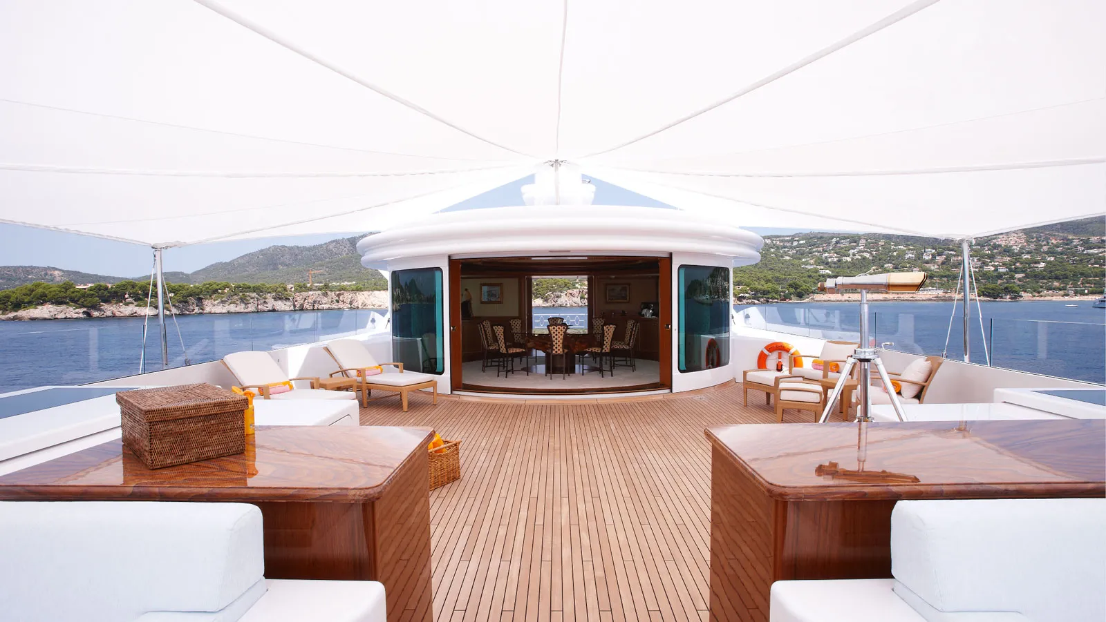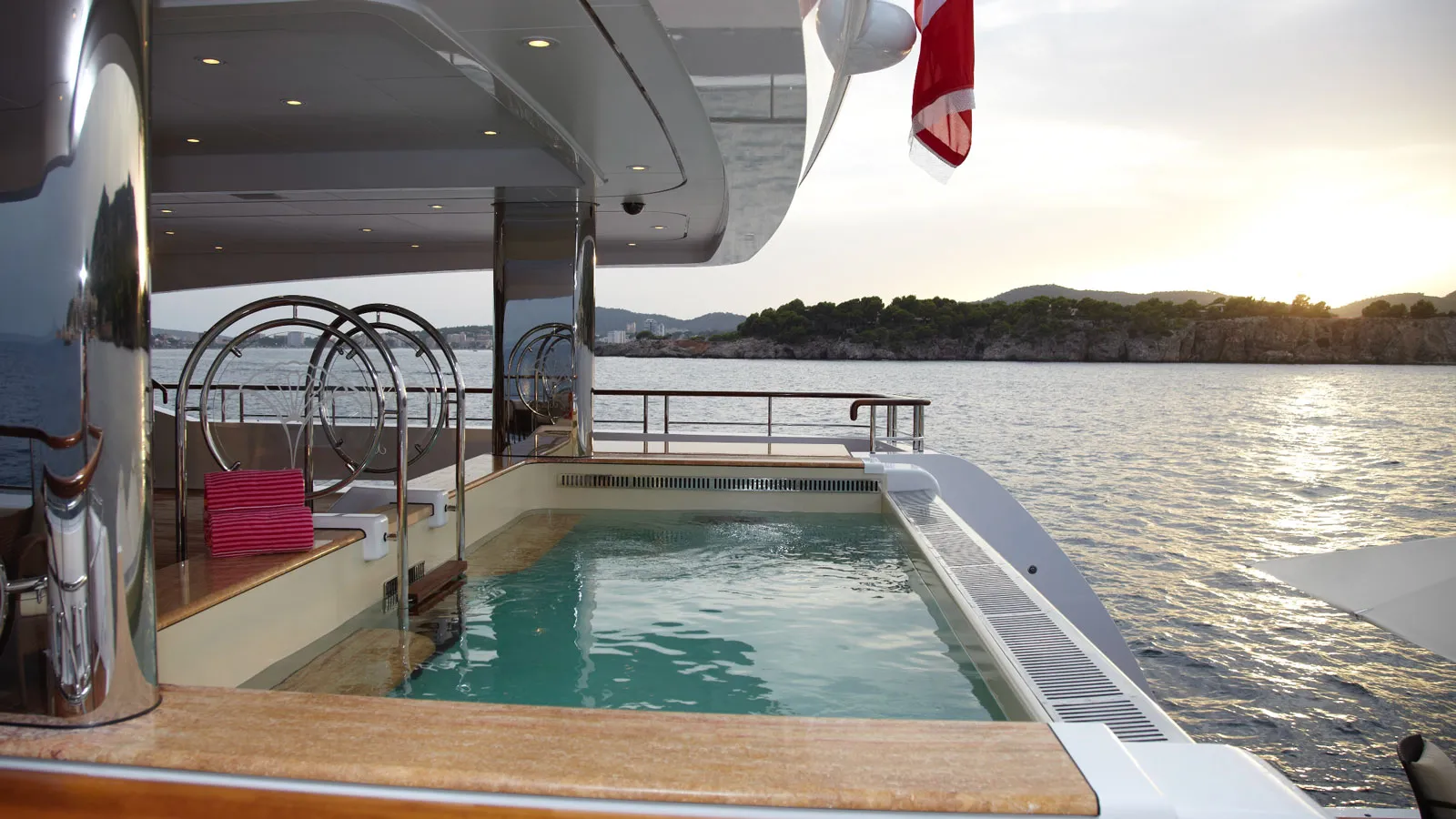 Key highlights include: A private owner’s deck replete with observation lounge replacing the bridge; certified helipad enabling safe helicopter arrivals; spacious guest accommodations across five suites beyond those on the owner’s deck; dedicated cinema and piano lounge offering panoramic views; abundant outdoor options like sunbathing areas alongside dining decks plus pool access from beach club facilities directly connecting guests to water activities.