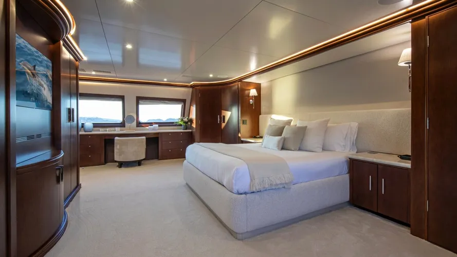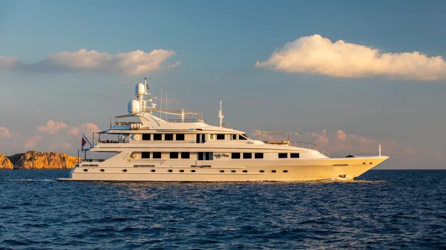 Originally crafted by Broward Shipyard in 1998, the stunning 45m/147.8ft yacht LADY NORA, initially known as COCOA Bean, exudes elegance with its all-aluminum build and shipyard-designed exterior. Spanish yacht design studio BYD revamped its interiors in 2022, creating fresh and airy spaces for guests and crew, featuring updated accommodations, galley, pantry, mess, laundry, and ventilation. Accommodating up to 10 guests and a crew of nine, LADY NORA ensures a luxurious stay.