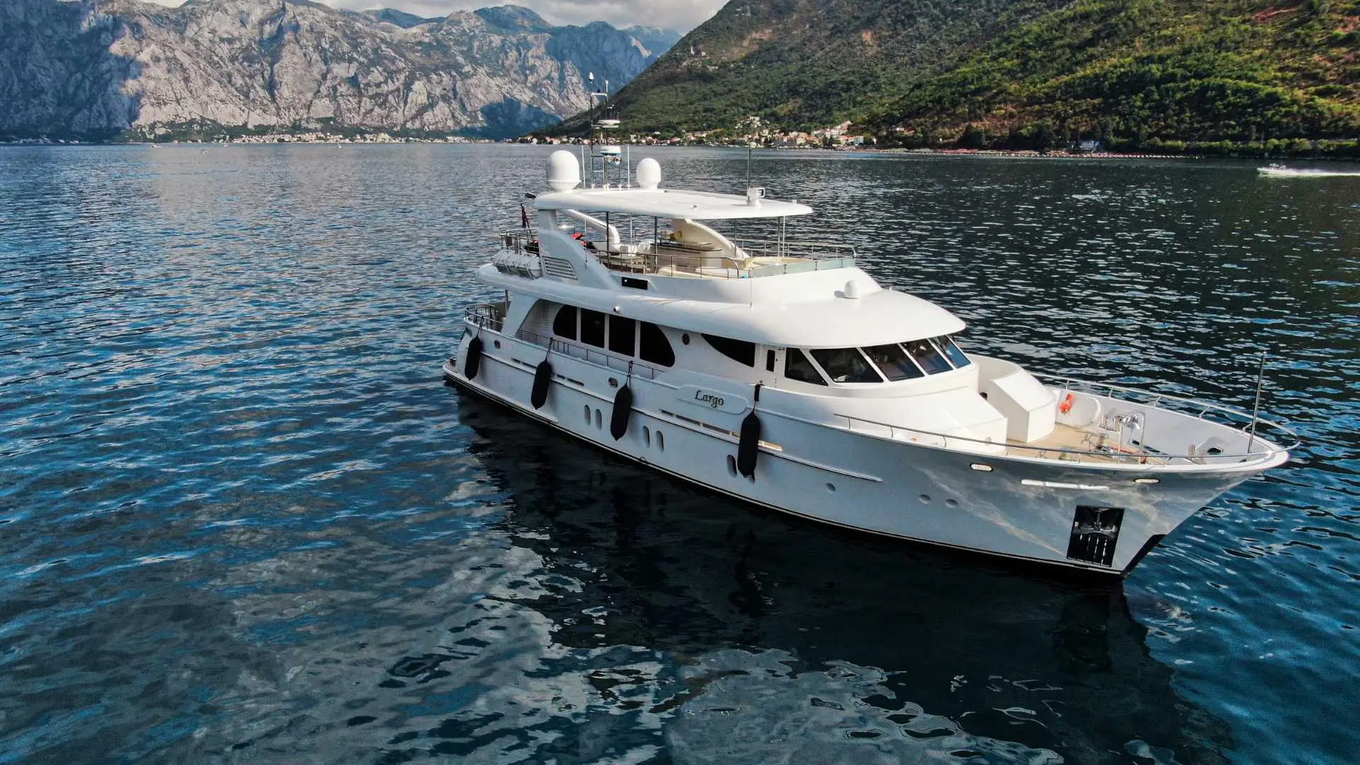 LARGO, The Timmerman 26, a 26.7-meter yacht, boasts a steel hull with an aluminum superstructure. Crafted by Timmerman Yachts and designed by Ginton Naval Architects with Guido de Groot’s stylish touch, this vessel is perfect for private cruising or chartering.
