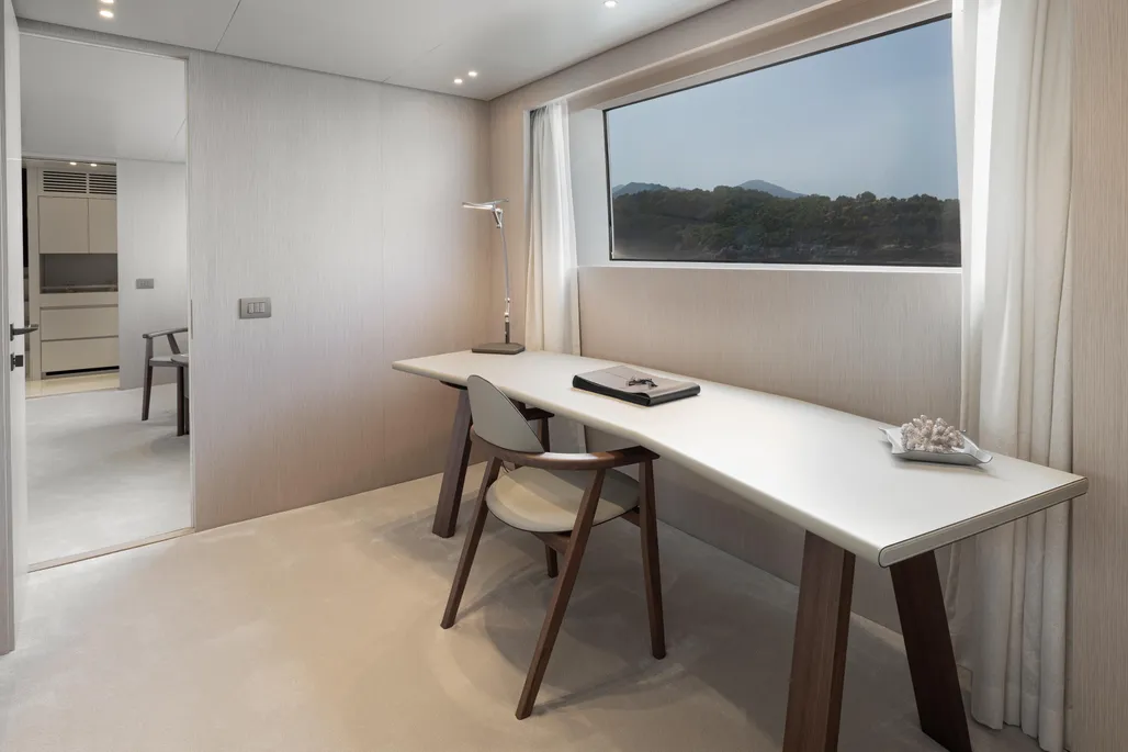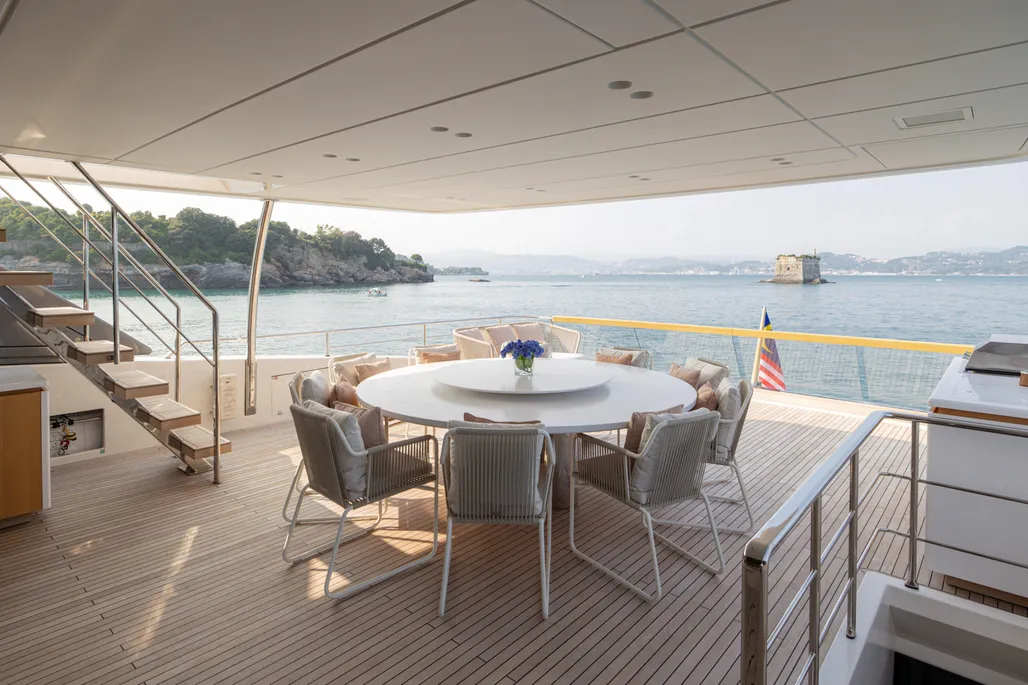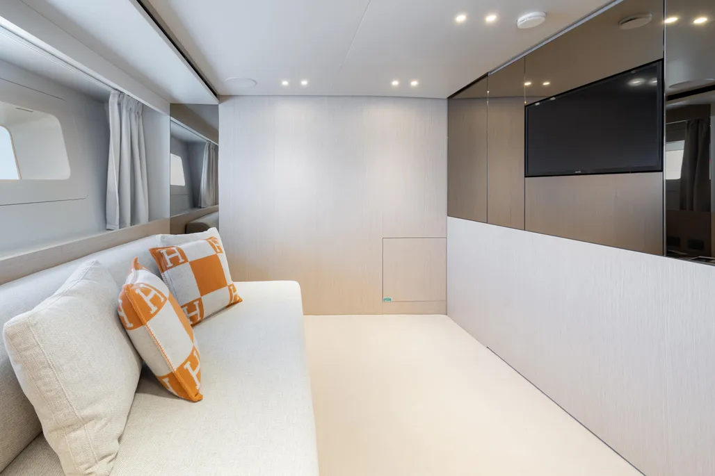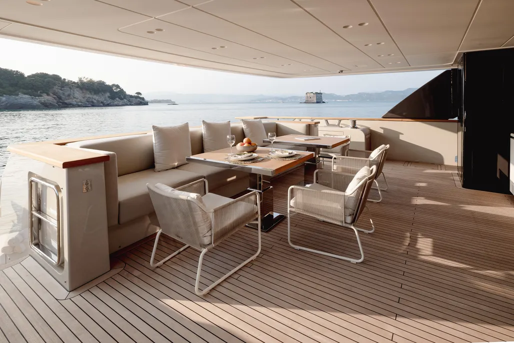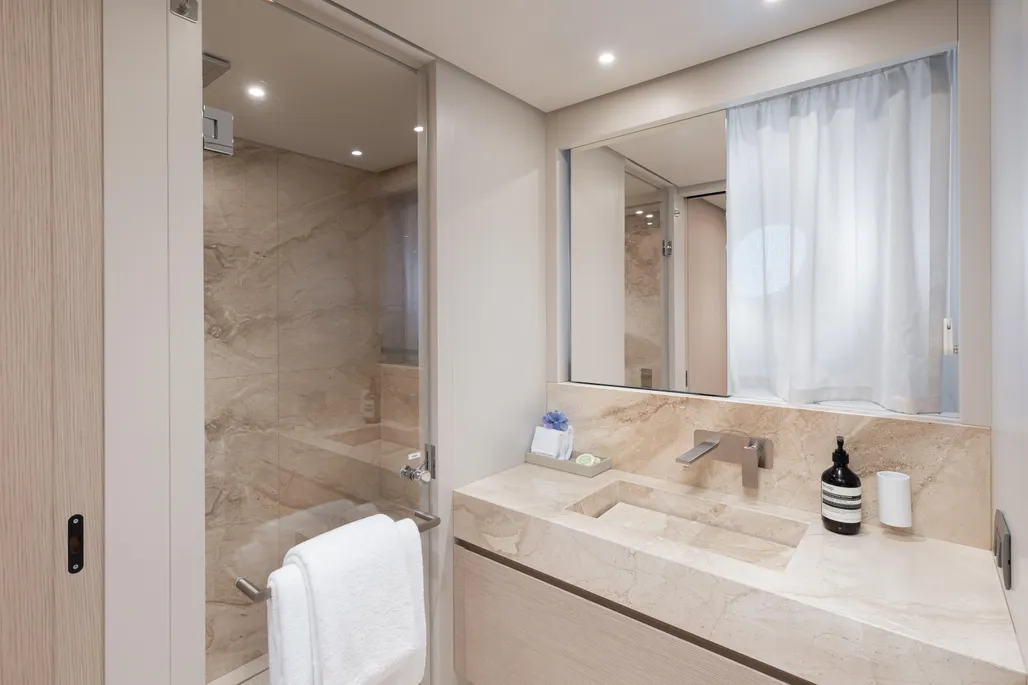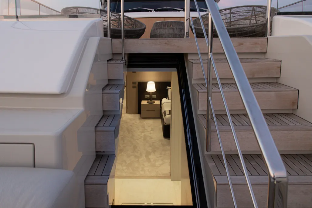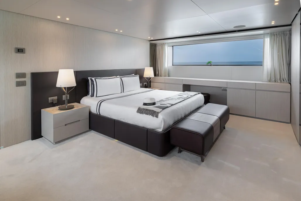 Highlights include immaculate presentation after only one season of private use; an exclusive layout featuring two master suites plus a massage room convertible into another guest cabin; renowned Sanlorenzo design enhanced with Hermès furnishings; luxurious interiors featuring upgraded marble bathrooms and oak floors in main areas. An al fresco balcony off the main salon facilitates effortless indoor-outdoor living experiences.