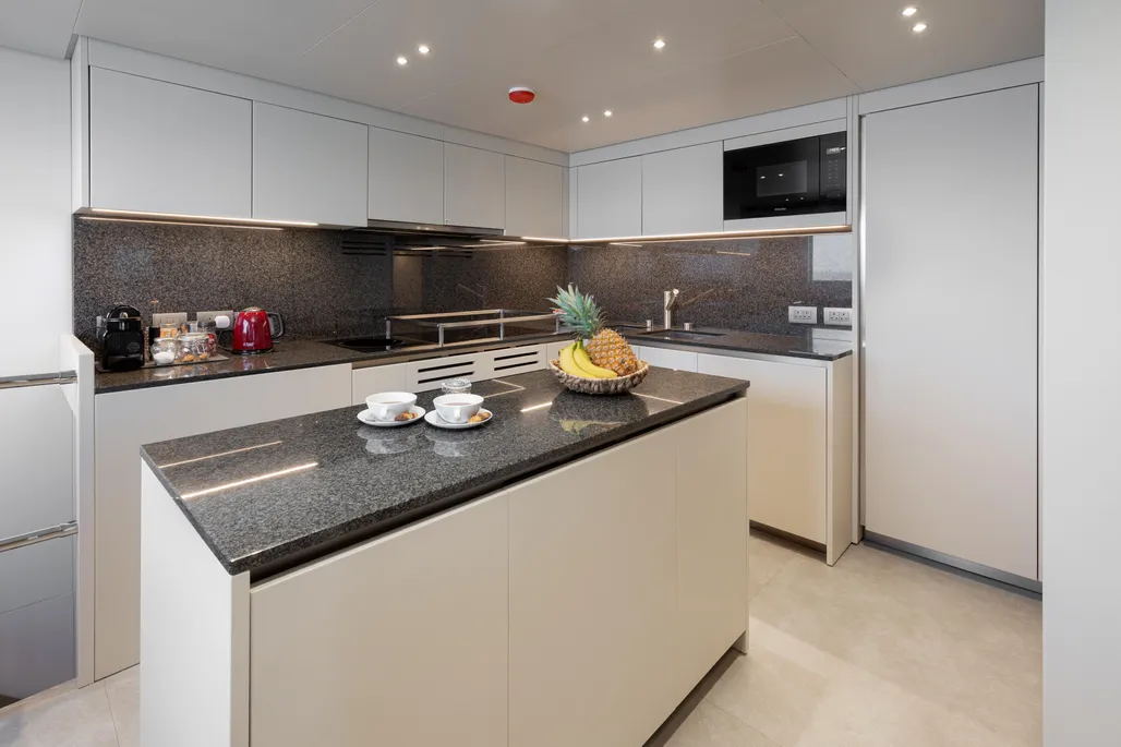 This yacht boasts an uncommon two-master suite configuration along with numerous upgrades that boost comfort and utility throughout—from tropical-grade air conditioning to comprehensive sun awnings on each deck. Located near its shipyard since delivery, it is in pristine condition offering buyers a ready-to-sail high-spec vessel for immediate adventures.