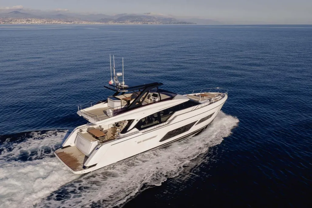 2025 Ferretti Yacht 720, in like-new condition, having sailed only one season and benefiting from the Ferretti Yachts manufacturer’s warranty.