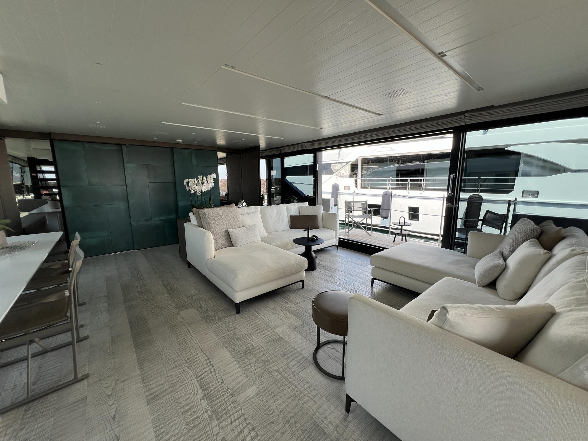 Meet MAREA, a standout Sanlorenzo SL 102A crafted by Zuccon International Project and shaped for an owner seeking more than the ordinary. This yacht rethinks traditional layouts with its asymmetric design, boosting internal space while making sure crew movement stays smooth and efficient. The sundeck invites outdoor enjoyment with its full bar, dining setup, lounge seating and sunbeds—all shaded or opened to sunshine thanks to clever retractable features—while the foredeck terrace offers a private escape connected directly from both outside stairs and the master suite. At water level, you’ll find easy swimming access via hydraulic platform plus storage for toys in a concealed tender garage.