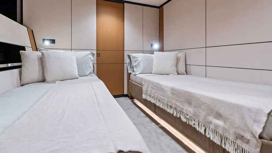 - Engineering Marvel: Gyro and fin stabilizers ensure a smooth ride, both at anchor and underway.