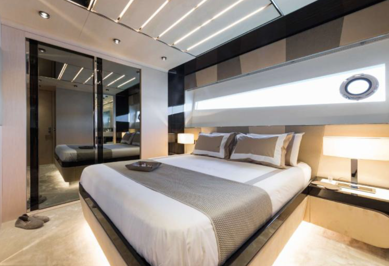 On board, guests are welcomed into an atmosphere of luxury and sophistication. The yacht boasts 5 spacious cabins—including a stunning full-beam master suite—accommodating up to 10 guests, with additional quarters for 4 crew. The interiors are bathed in natural light, enhanced by modern décor, and equipped with a state-of-the-art entertainment system. Every area, from the elegant main saloon to the relaxing lower deck, is designed to elevate life at sea.