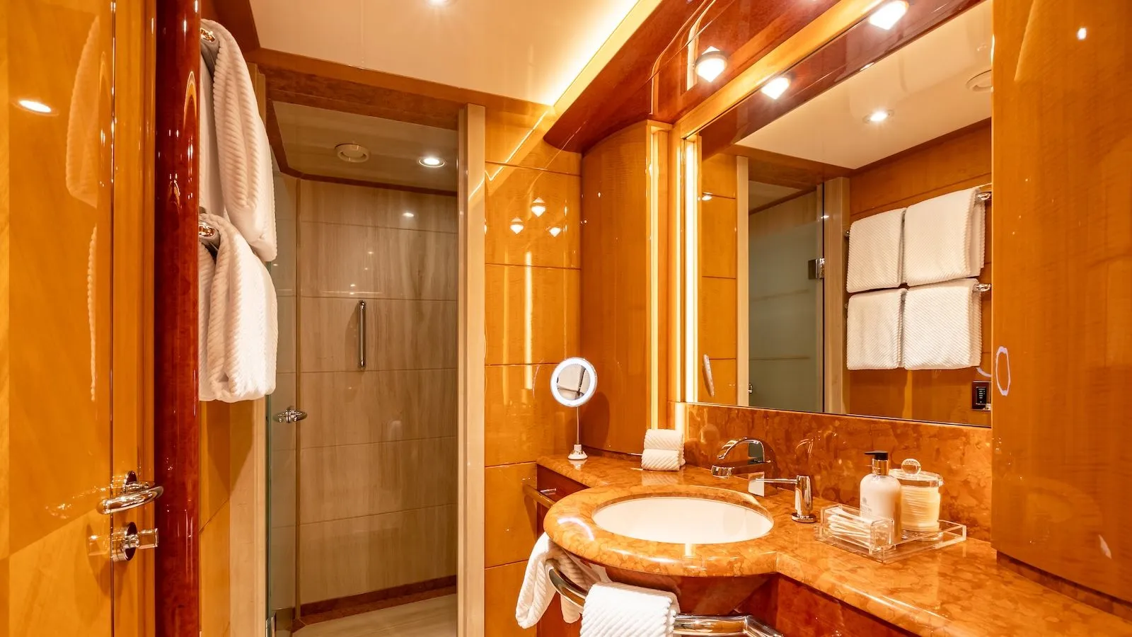 - Starlink satellite systems ensuring reliable high‑bandwidth connectivity across the vessel