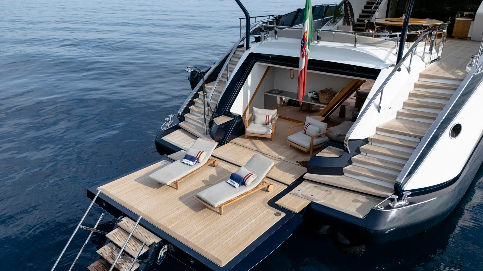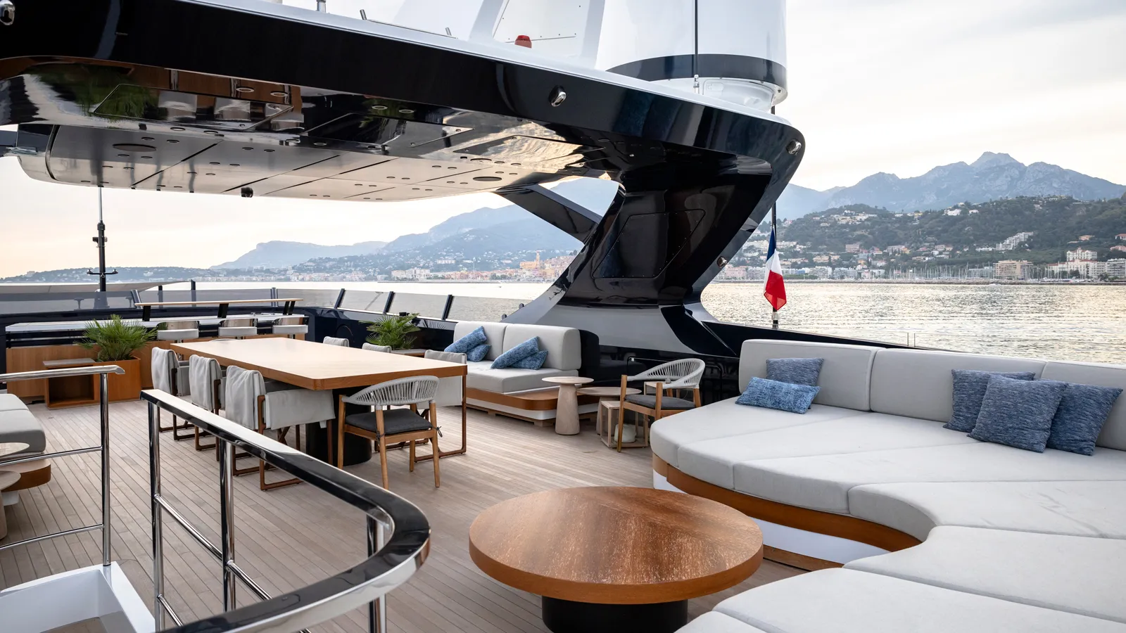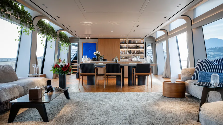This beauty zips across the water at a top speed of 34 knots, offering a cruising range of 650 nautical miles powered by four robust MTU diesel engines. “No Rush” comfortably hosts up to 12 guests in six luxurious staterooms, attended by a crew of 10. With a spacious beam of 9.2 meters and a gross tonnage of 499 GT, she promises a smooth and stable voyage.