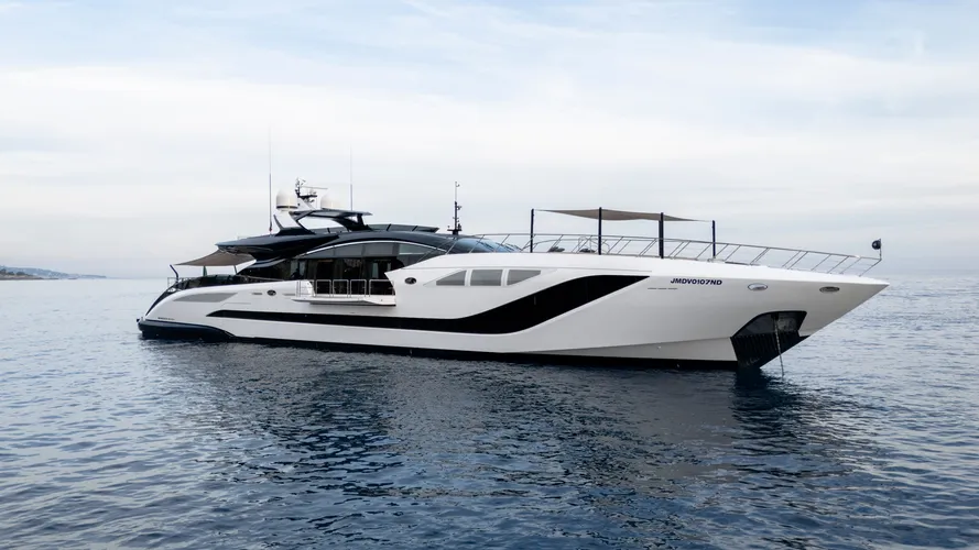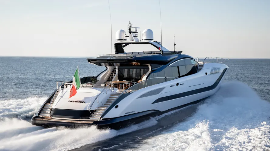 Introducing “No Rush,” a sleek 49.9 m motor yacht crafted in Italy by the renowned Overmarine Group and launched in 2023. She’s part of the exclusive Mangusta 165 REV line, one of only six models available.
