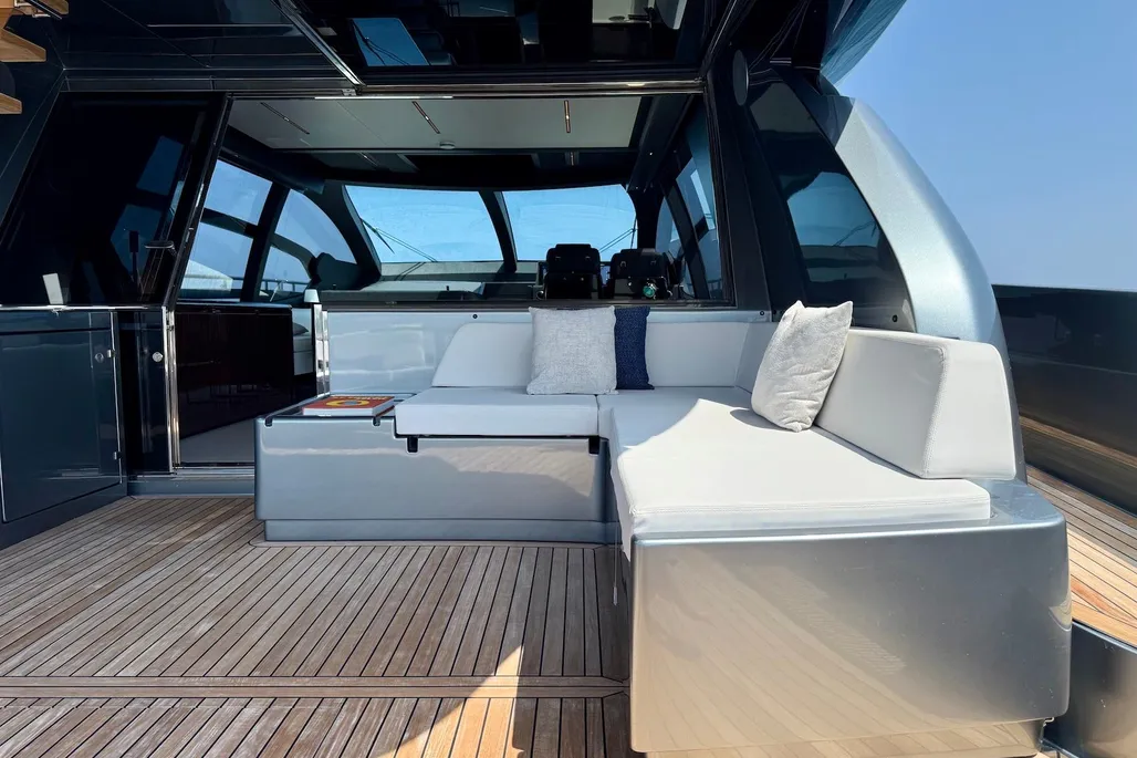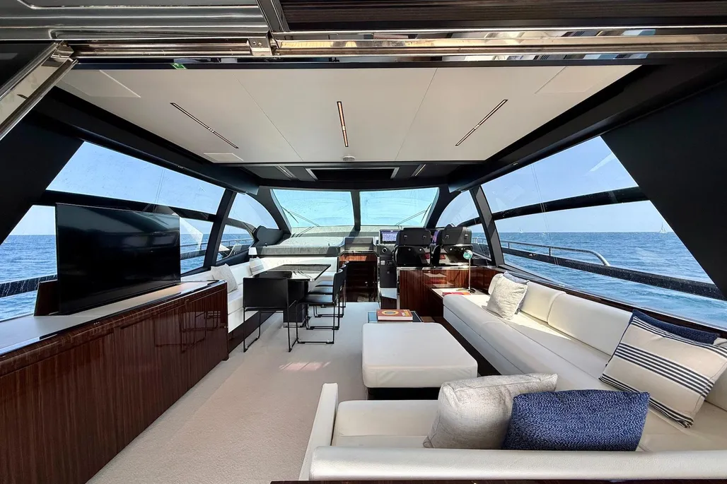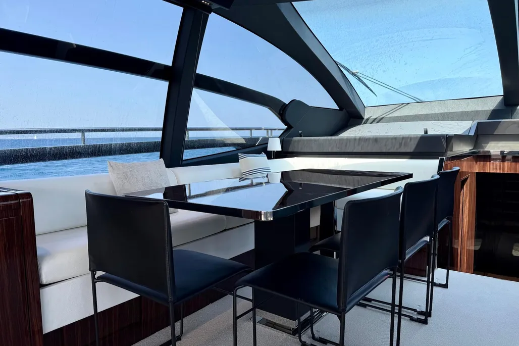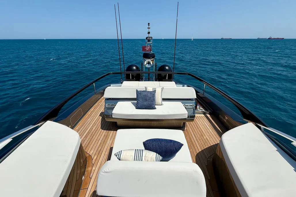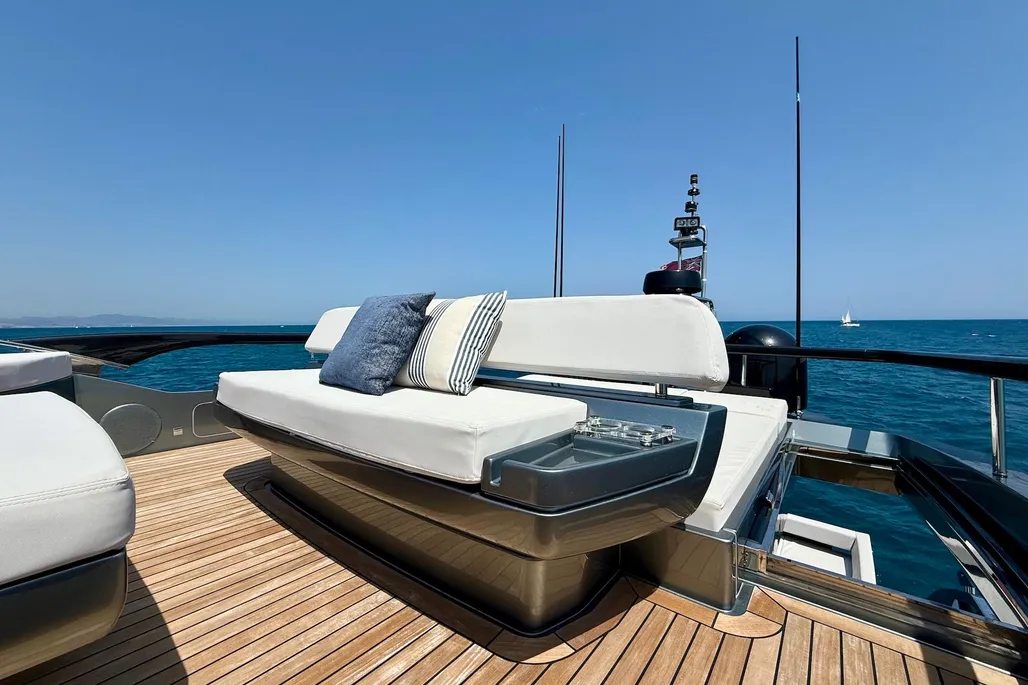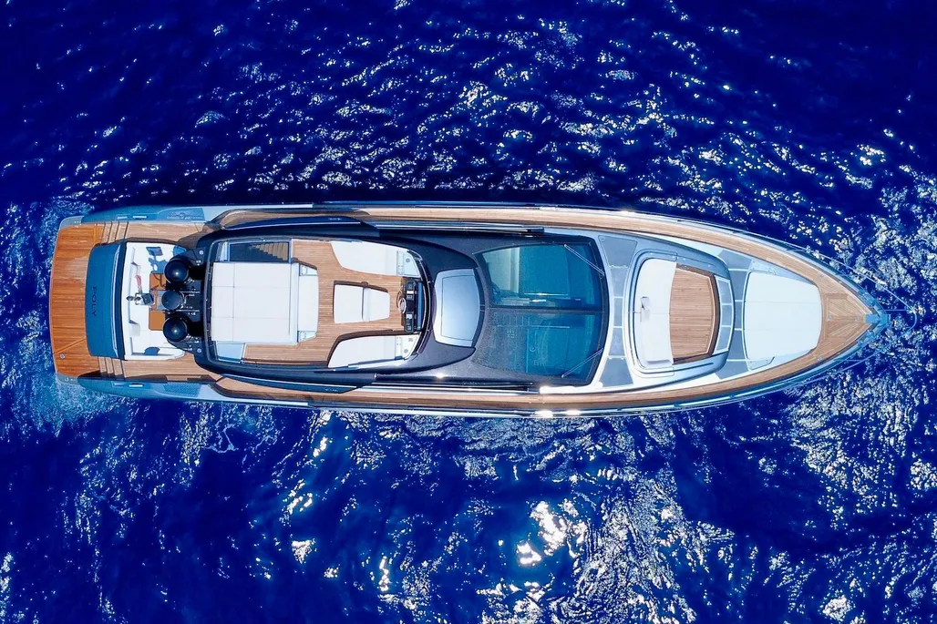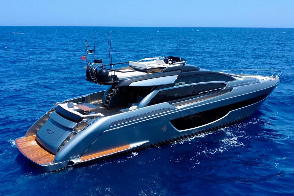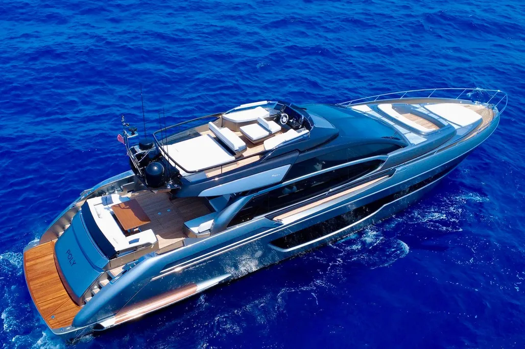 M/Y POLY I is a striking Riva 76′ Perseo Super that showcases the best of Italian design and engineering. Her Shark Grey finish with bold black accents creates a sleek, unforgettable presence on the water. Powered by twin MAN V12 1800hp engines, she offers impressive speed and effortless cruising. Step inside to discover a luxurious interior adorned with 100-gloss Rosewood, where modern style meets classic elegance. Every element highlights Riva’s dedication to refined aesthetics and cutting-edge technology, making M/Y POLY I the ultimate choice for those seeking power, style, and comfort at sea.