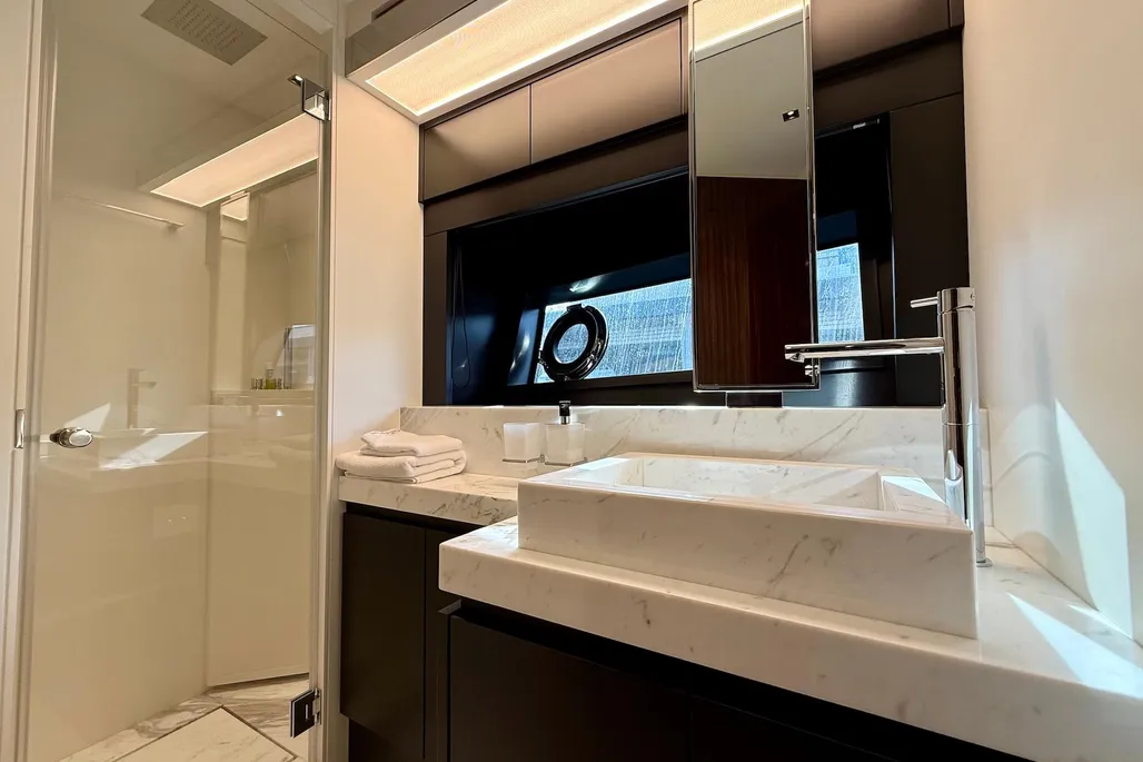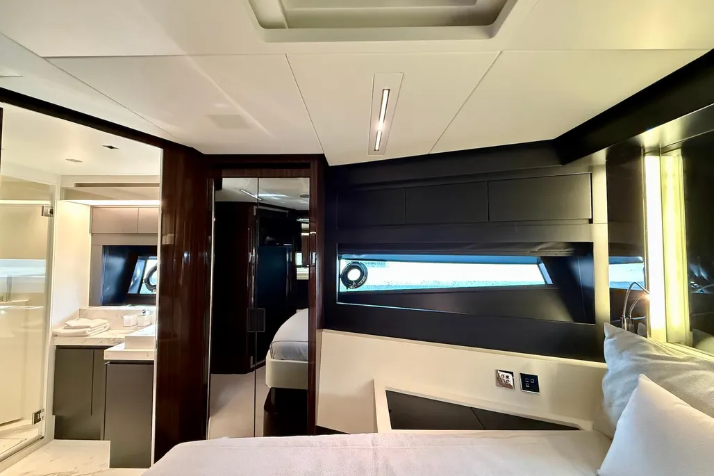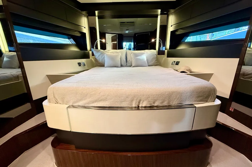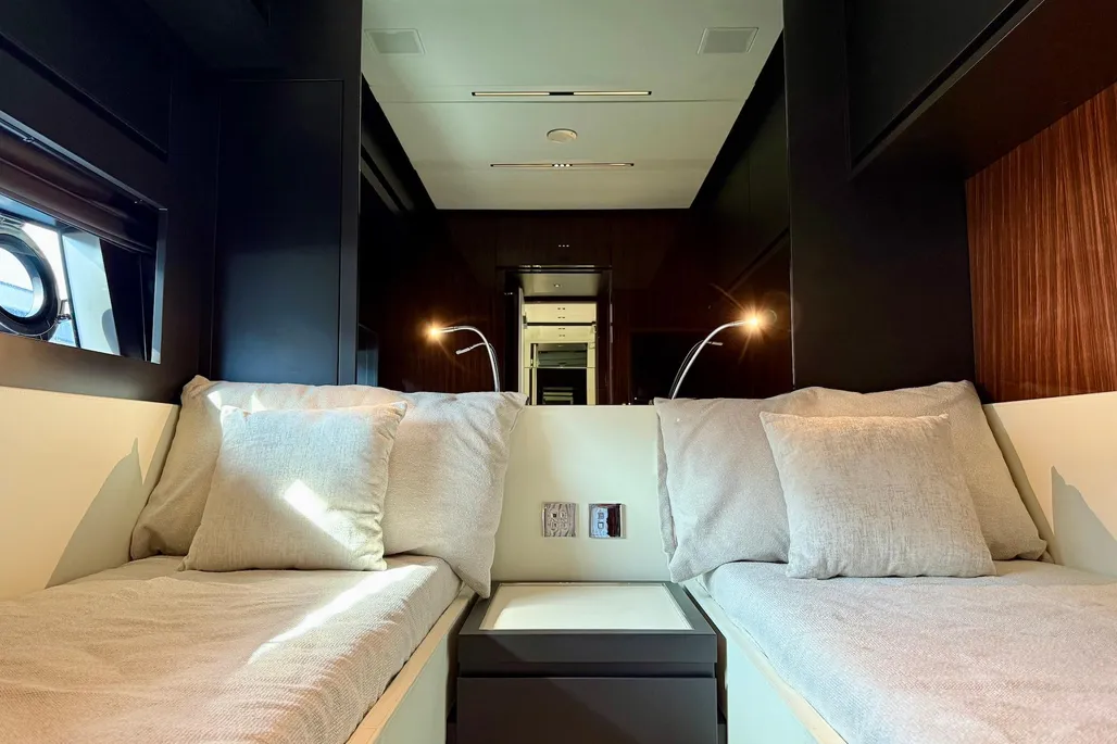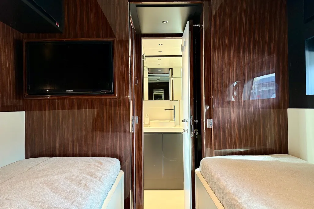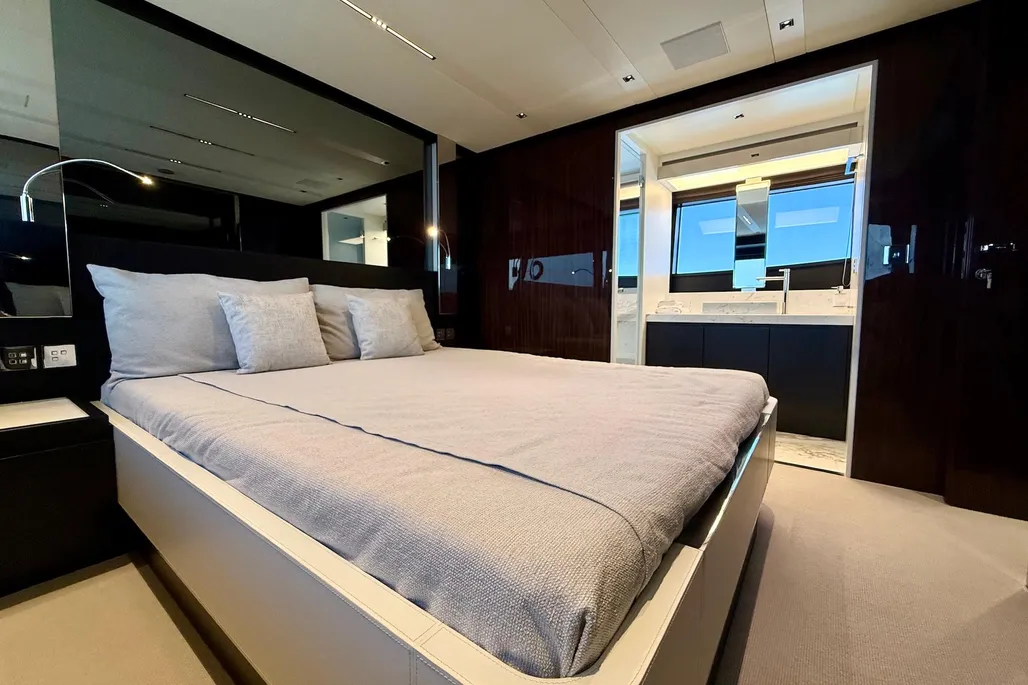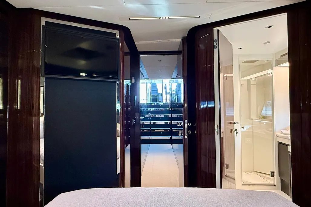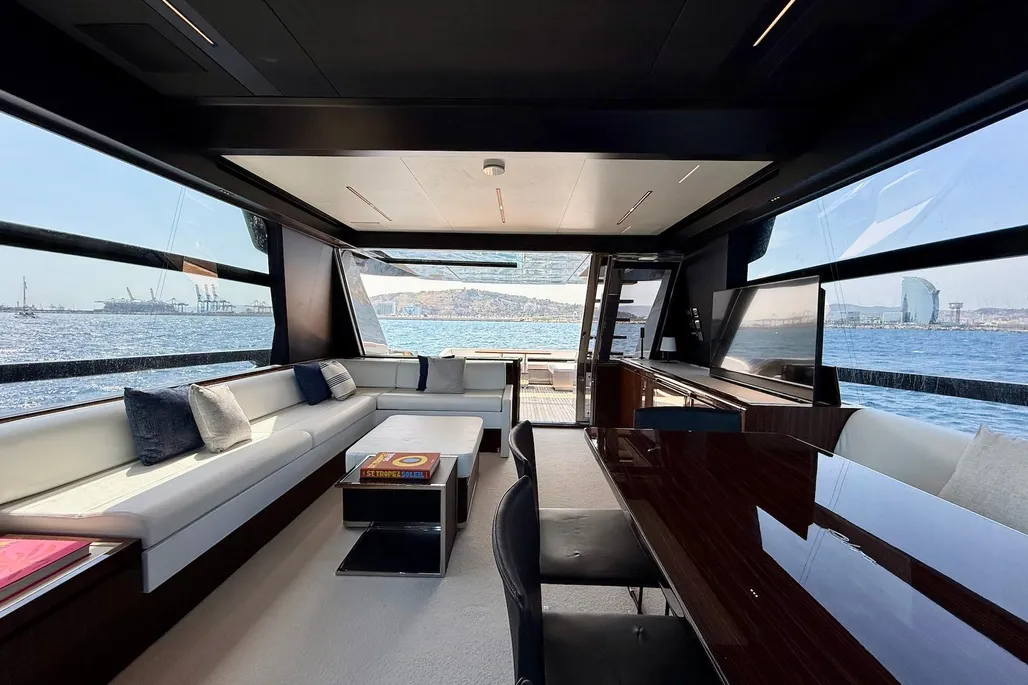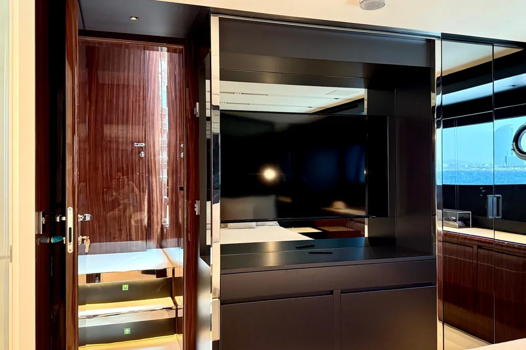 M/Y POLY I is a striking Riva 76′ Perseo Super that showcases the best of Italian design and engineering. Her Shark Grey finish with bold black accents creates a sleek, unforgettable presence on the water. Powered by twin MAN V12 1800hp engines, she offers impressive speed and effortless cruising. Step inside to discover a luxurious interior adorned with 100-gloss Rosewood, where modern style meets classic elegance. Every element highlights Riva’s dedication to refined aesthetics and cutting-edge technology, making M/Y POLY I the ultimate choice for those seeking power, style, and comfort at sea.