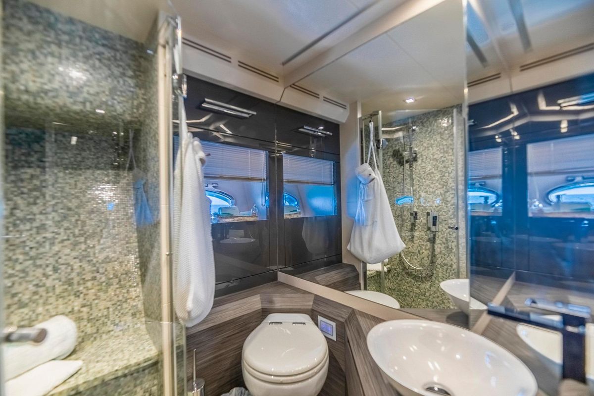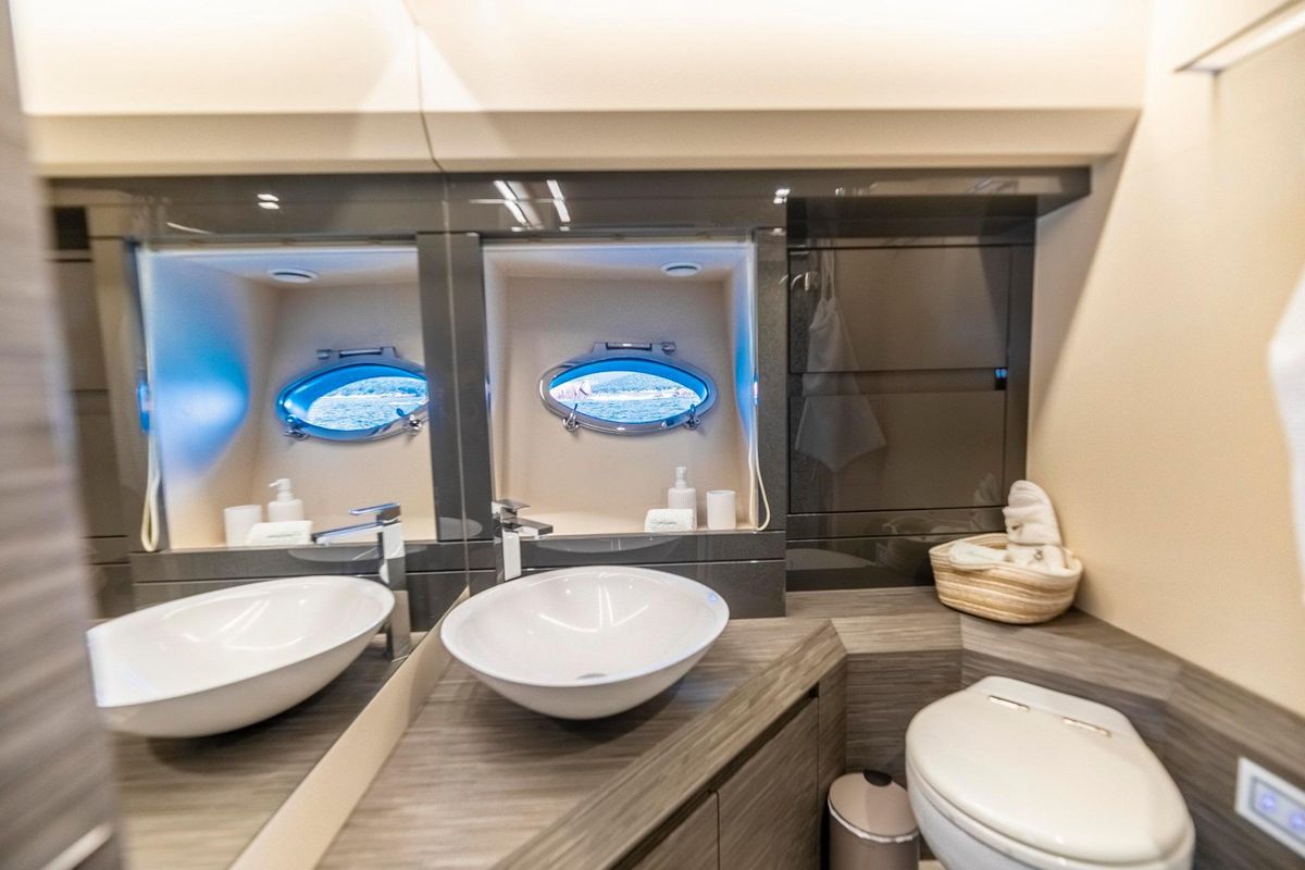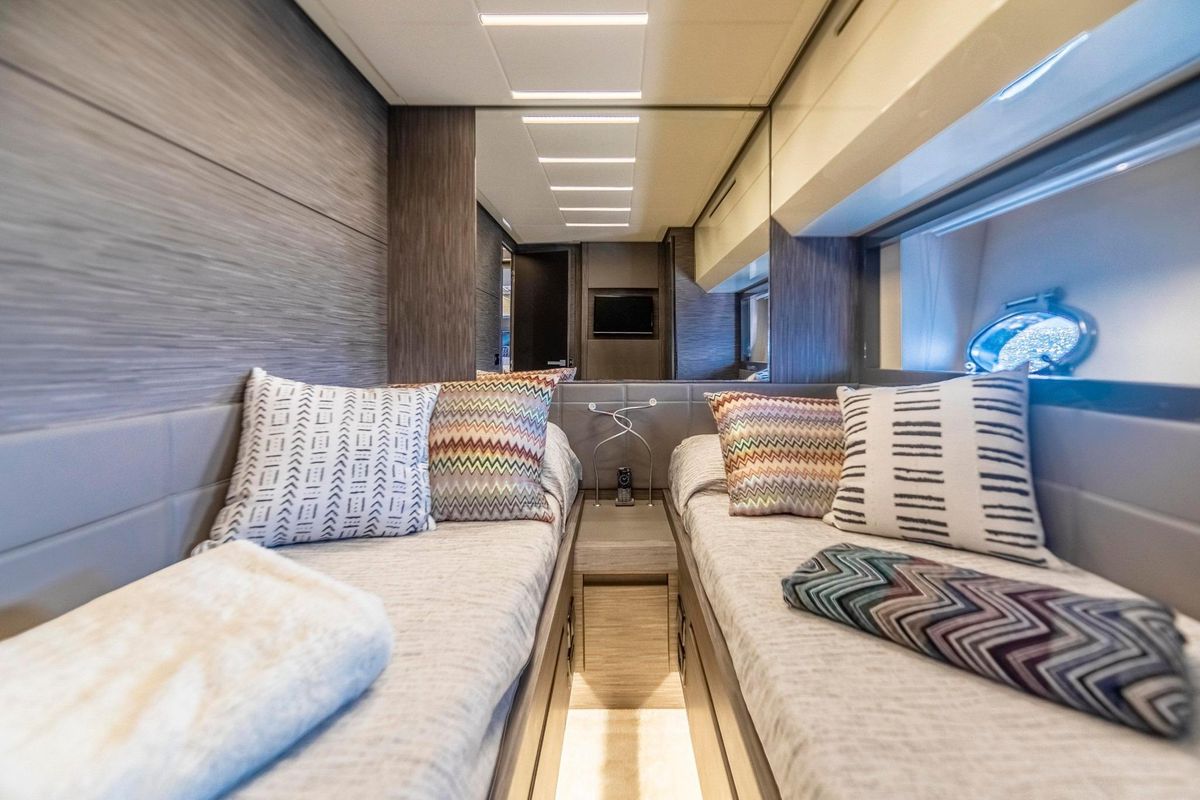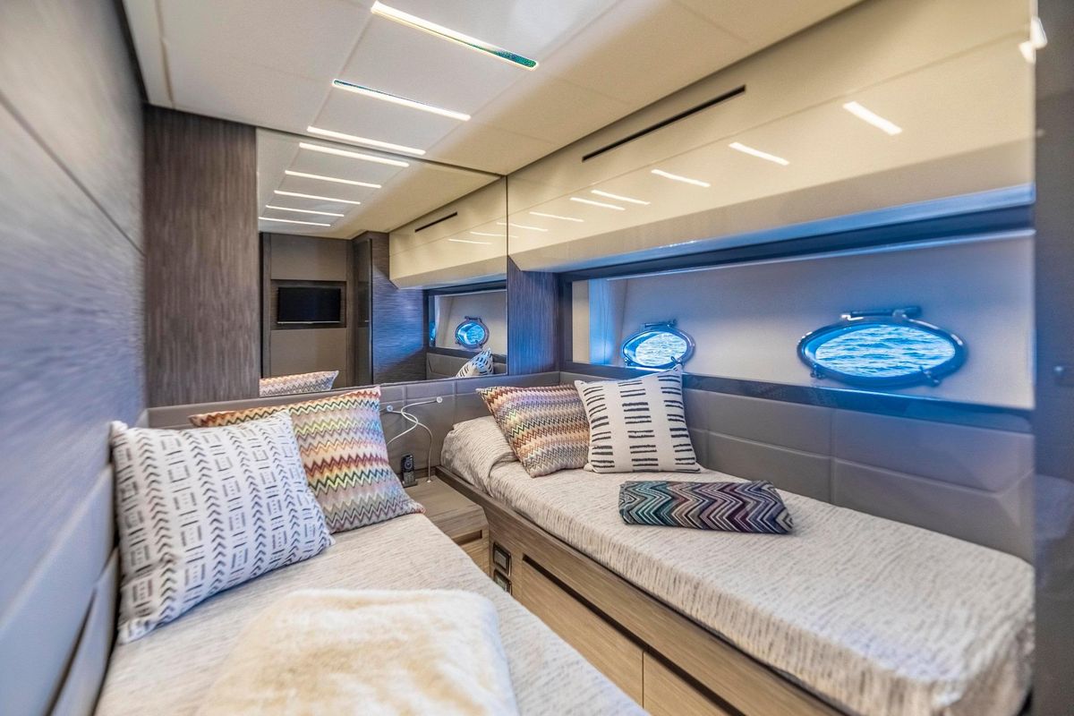 SANTA BARBARA welcomes up to 8 guests with a full-beam Owner’s Stateroom, a forward VIP, and two twin staterooms.