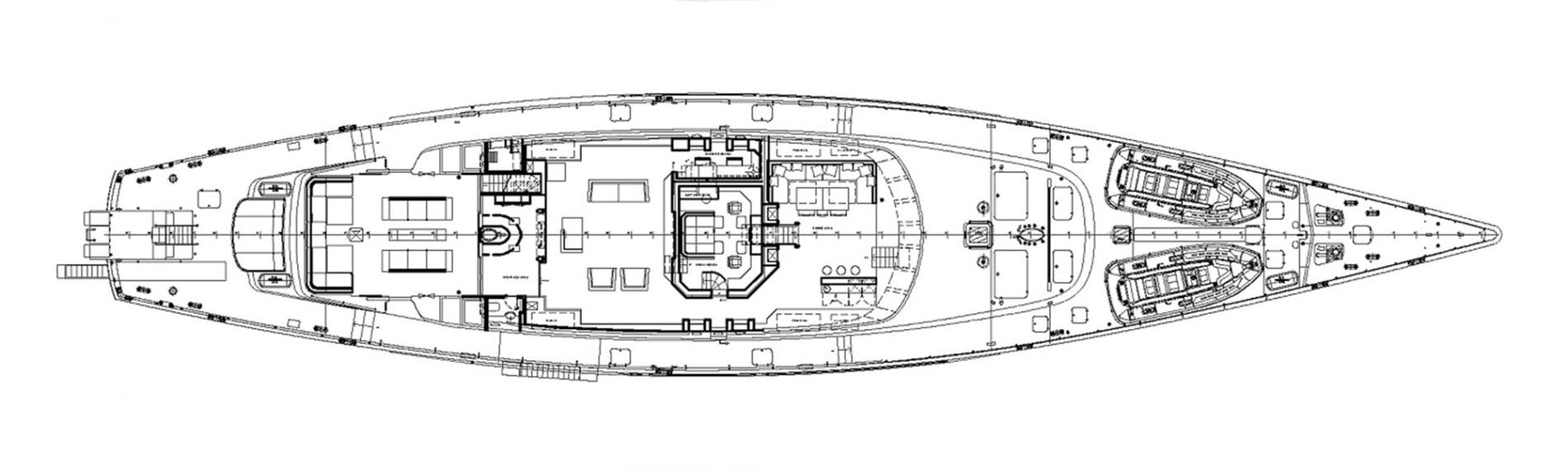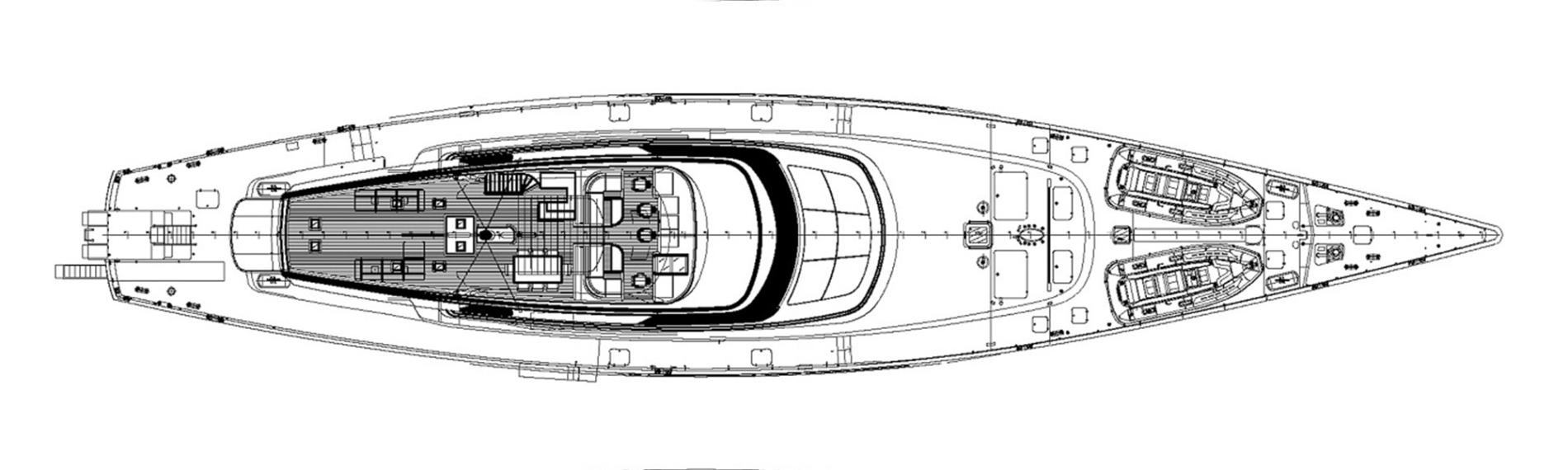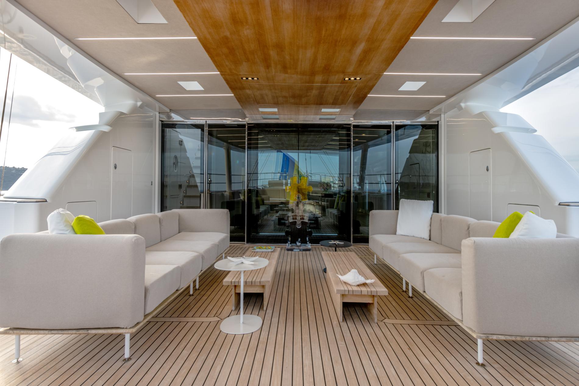The aft features a retractable bathing platform for easy water access or tender bay for the 12m SACS RIB chase boat. Enjoy water toys like Seabobs, Sea-Doos, wakeboards, paddleboards, and dinghies, plus snorkeling gear and fishing equipment.
