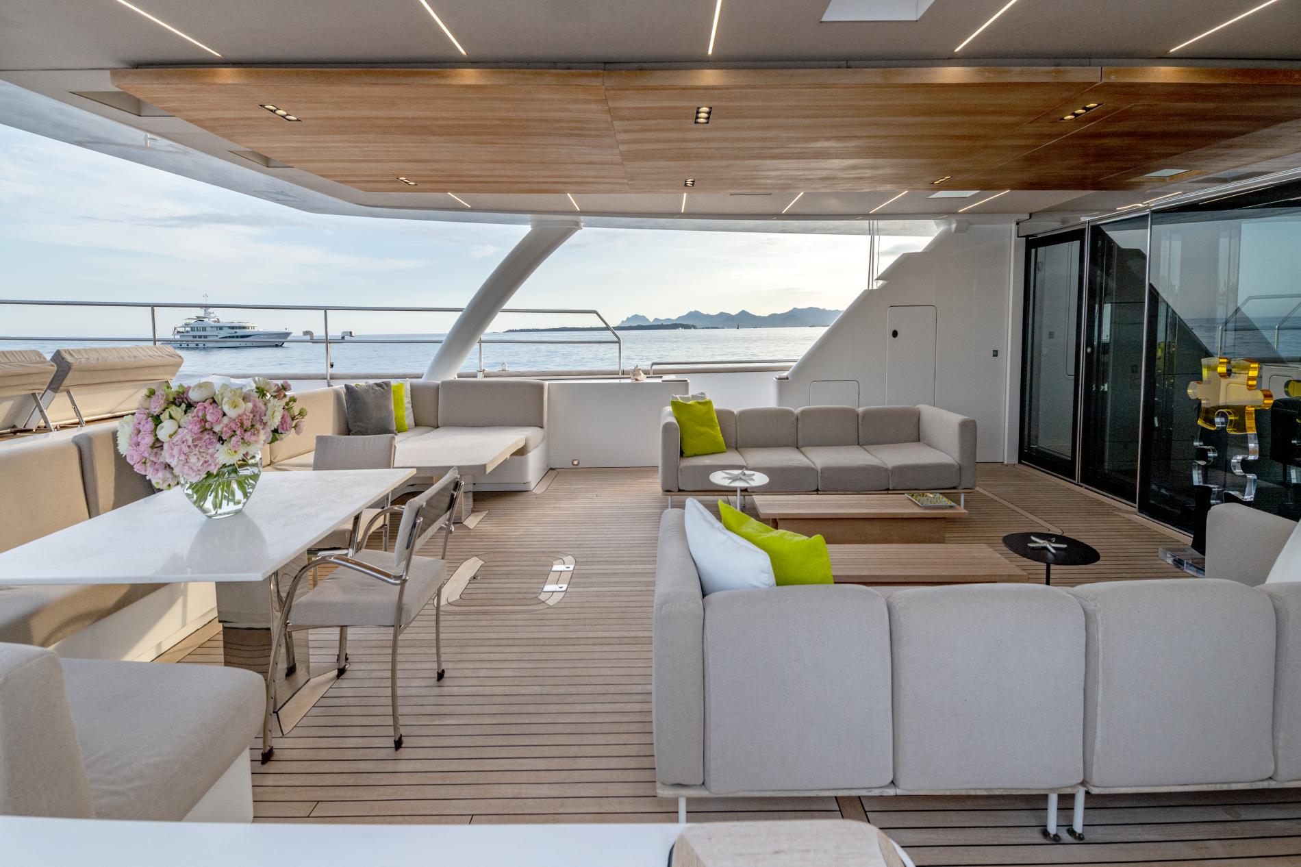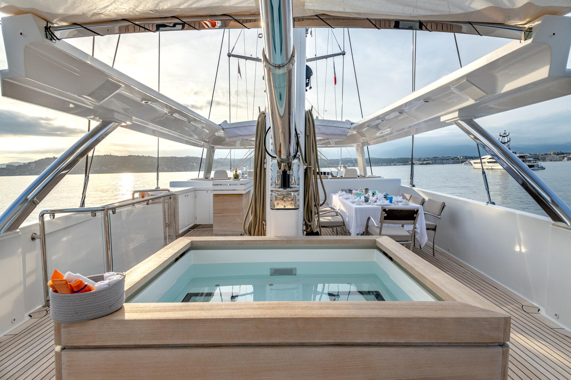 - Leisure areas with swim platform, Jacuzzi, and convertible pool