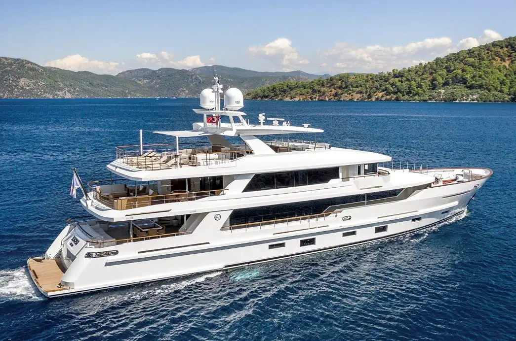 Luxury and comfort are the hallmarks of the 43-meter Sunrise superyacht, finalist of the World Superyachts Awards in the Displacement Motor Yacht category for vessels below 500GT and above 40m. Built by Yildiz Shipyard in Istanbul in 2020, this displacement motor yacht features an interior designed by Hot Lab and offers an elevator from the lower deck to the sky deck.