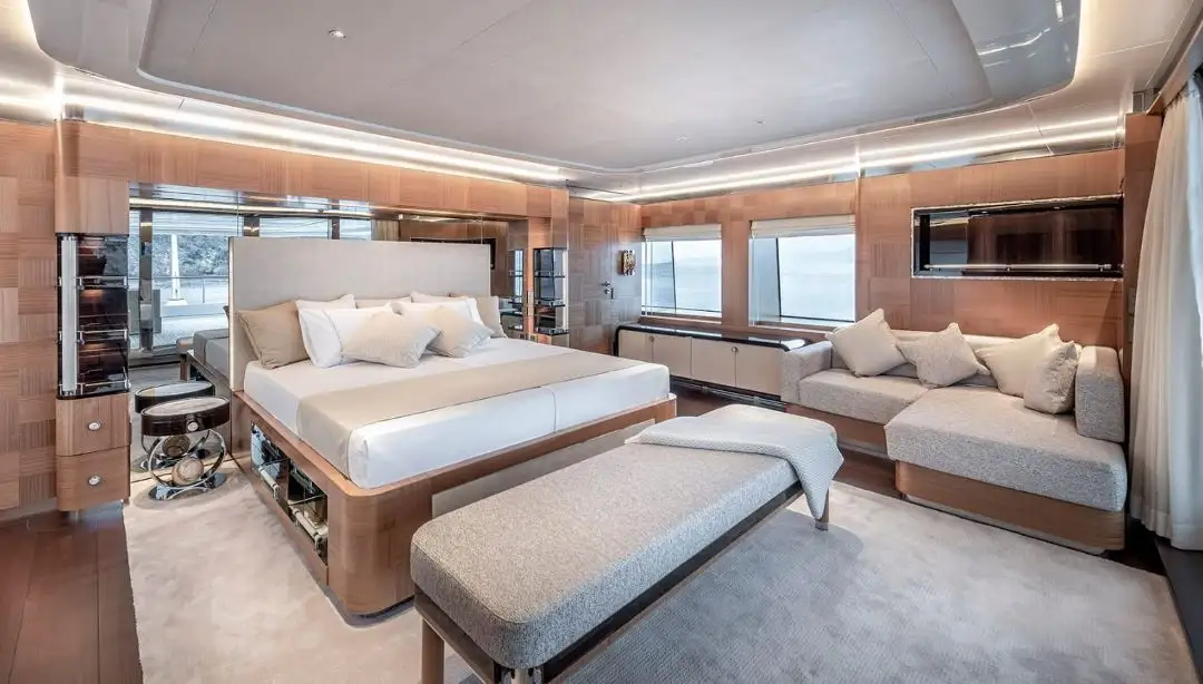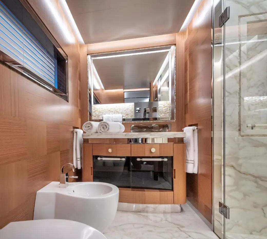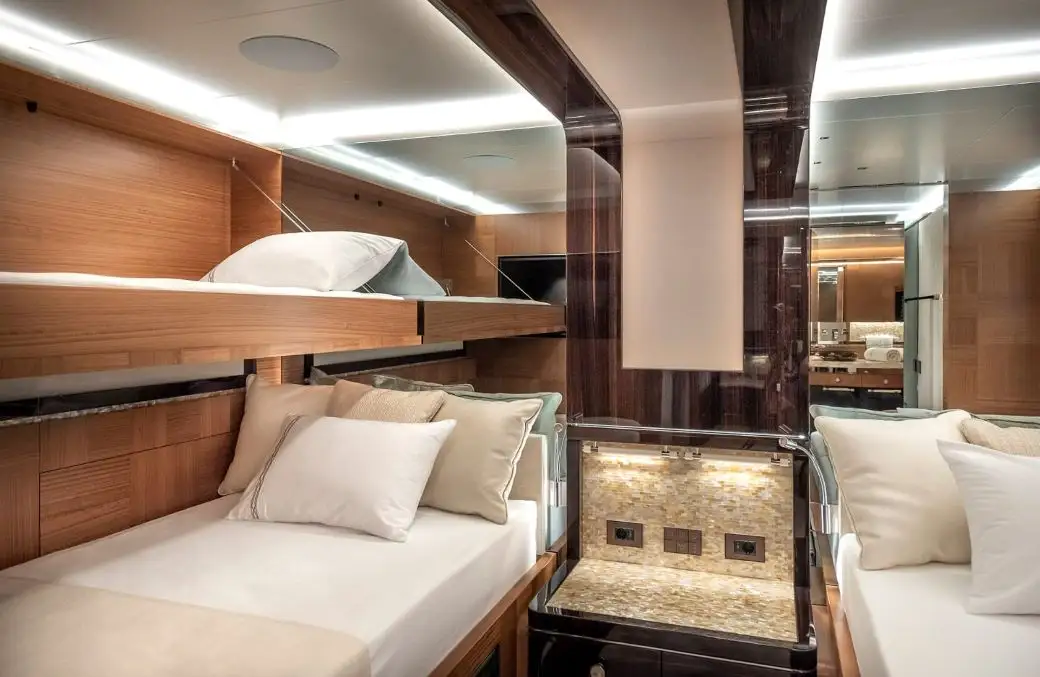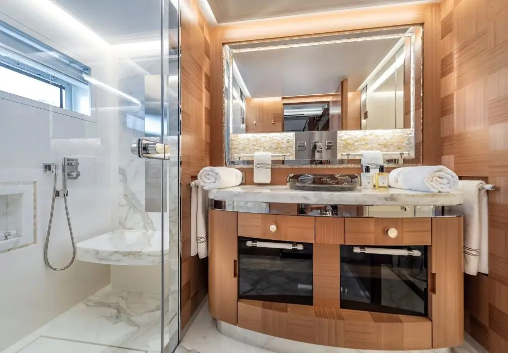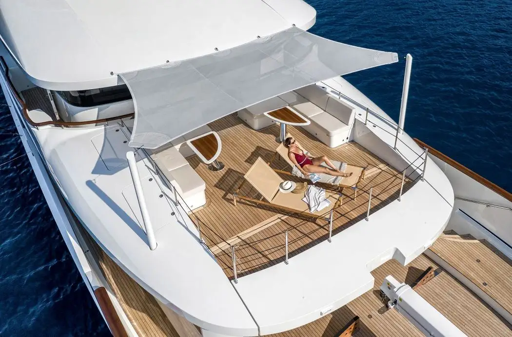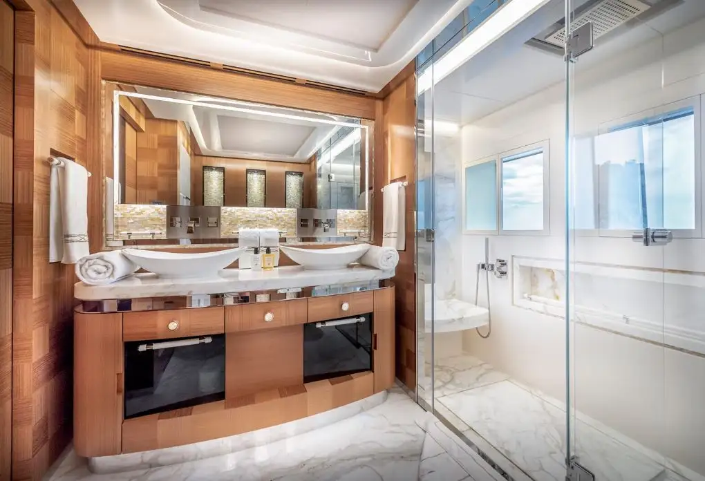 Sunrise can accommodate up to 12 guests in its impressive 5 staterooms, including a full-beam master suite on the upper deck with a private deck and elevator access.