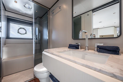 - Zero-speed and underway stabilizers, bow and stern thrusters, super-tropical AC