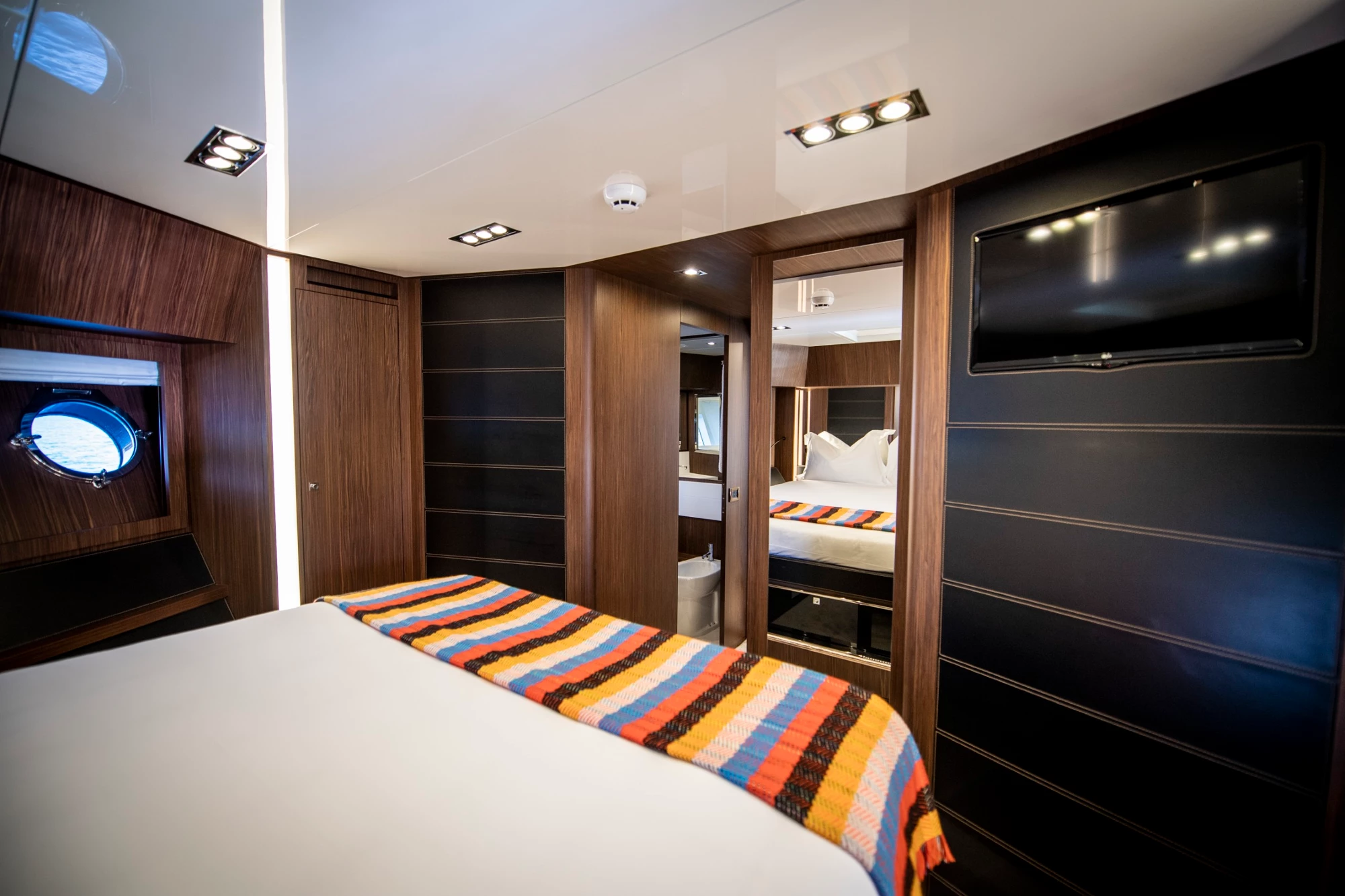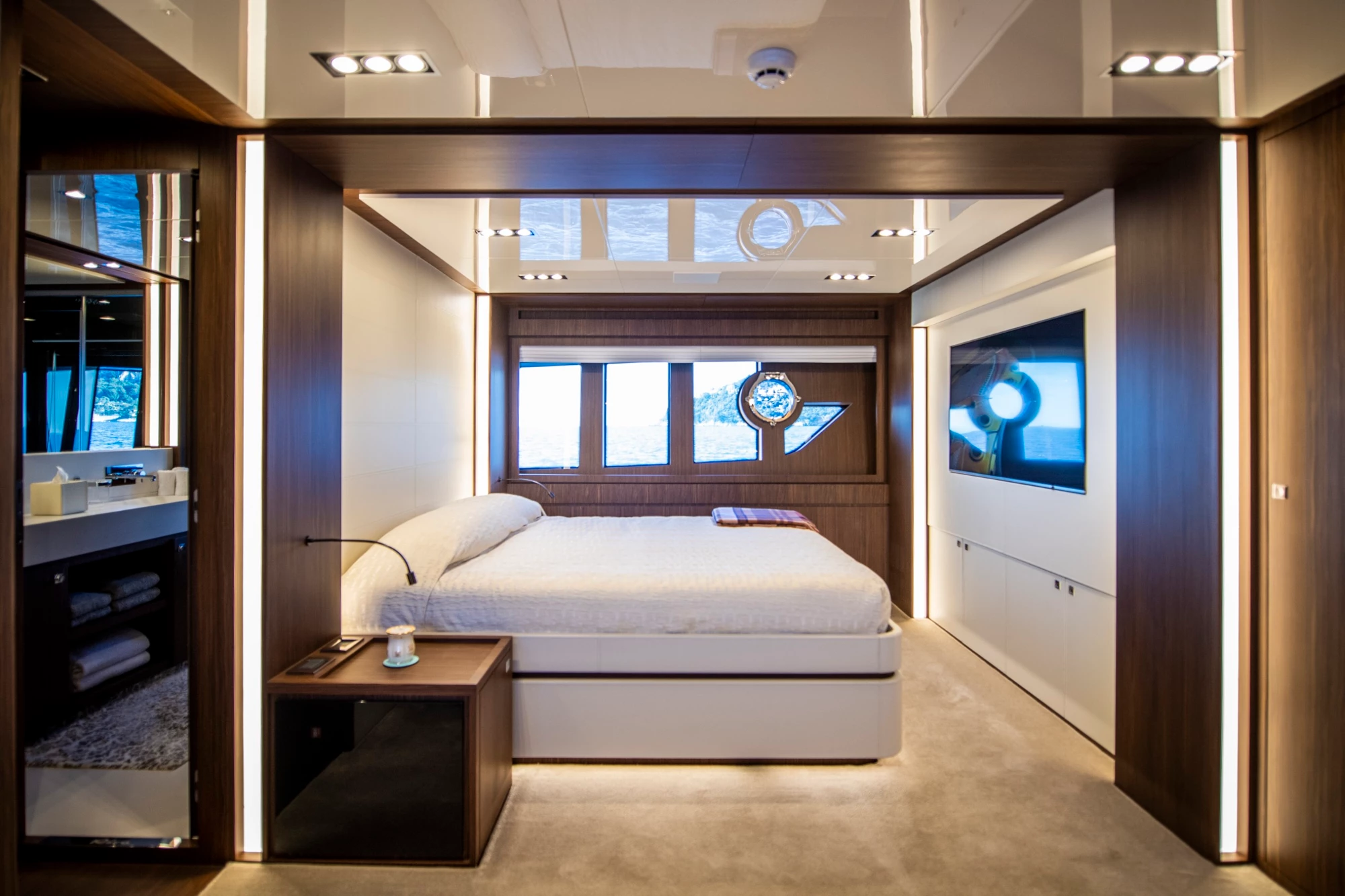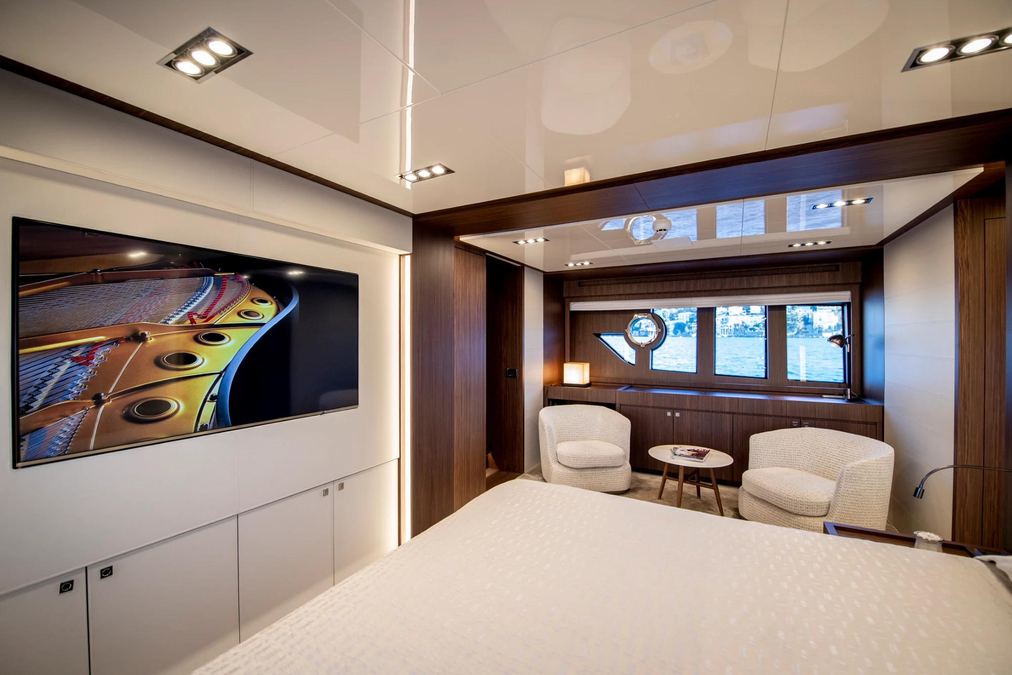 Invite up to eight guests to enjoy four elegantly designed staterooms, including an Owner’s Suite, full-beam VIP room, double, and twin stateroom. Relax in the main salon, drenched in natural light and finished with top-notch Riva interiors for the perfect blend of comfort and style.