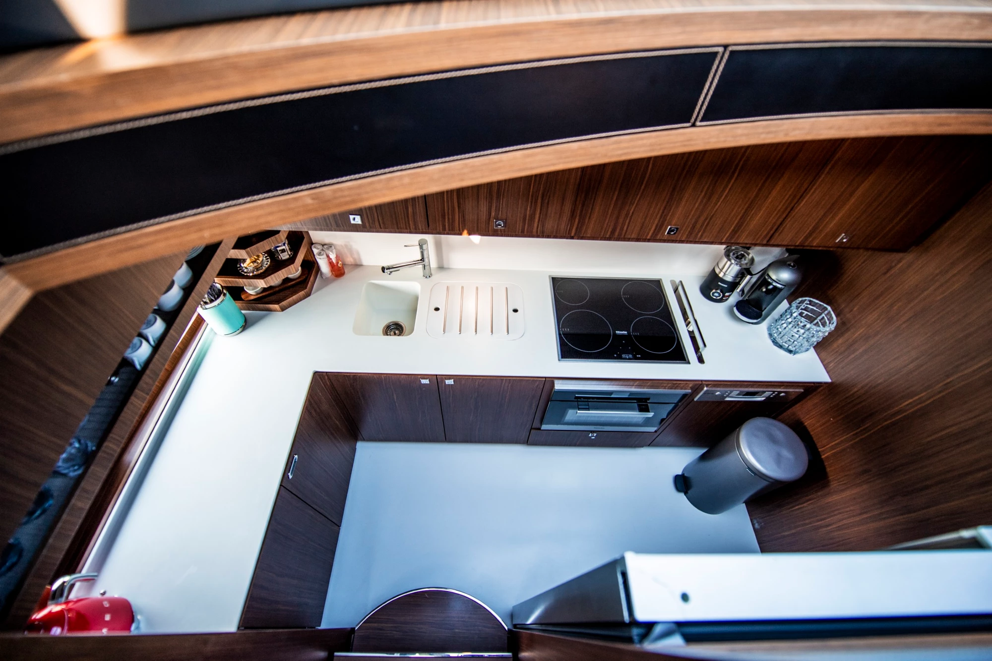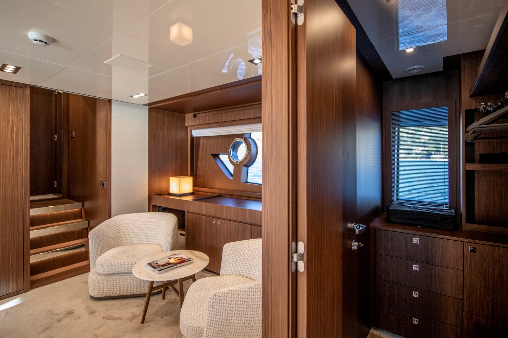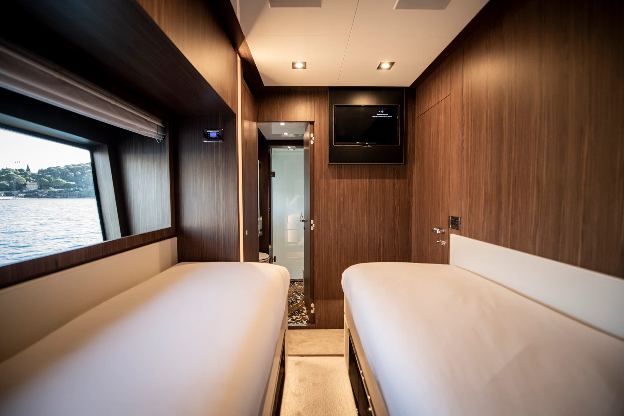 Invite up to eight guests to enjoy four elegantly designed staterooms, including an Owner’s Suite, full-beam VIP room, double, and twin stateroom. Relax in the main salon, drenched in natural light and finished with top-notch Riva interiors for the perfect blend of comfort and style.