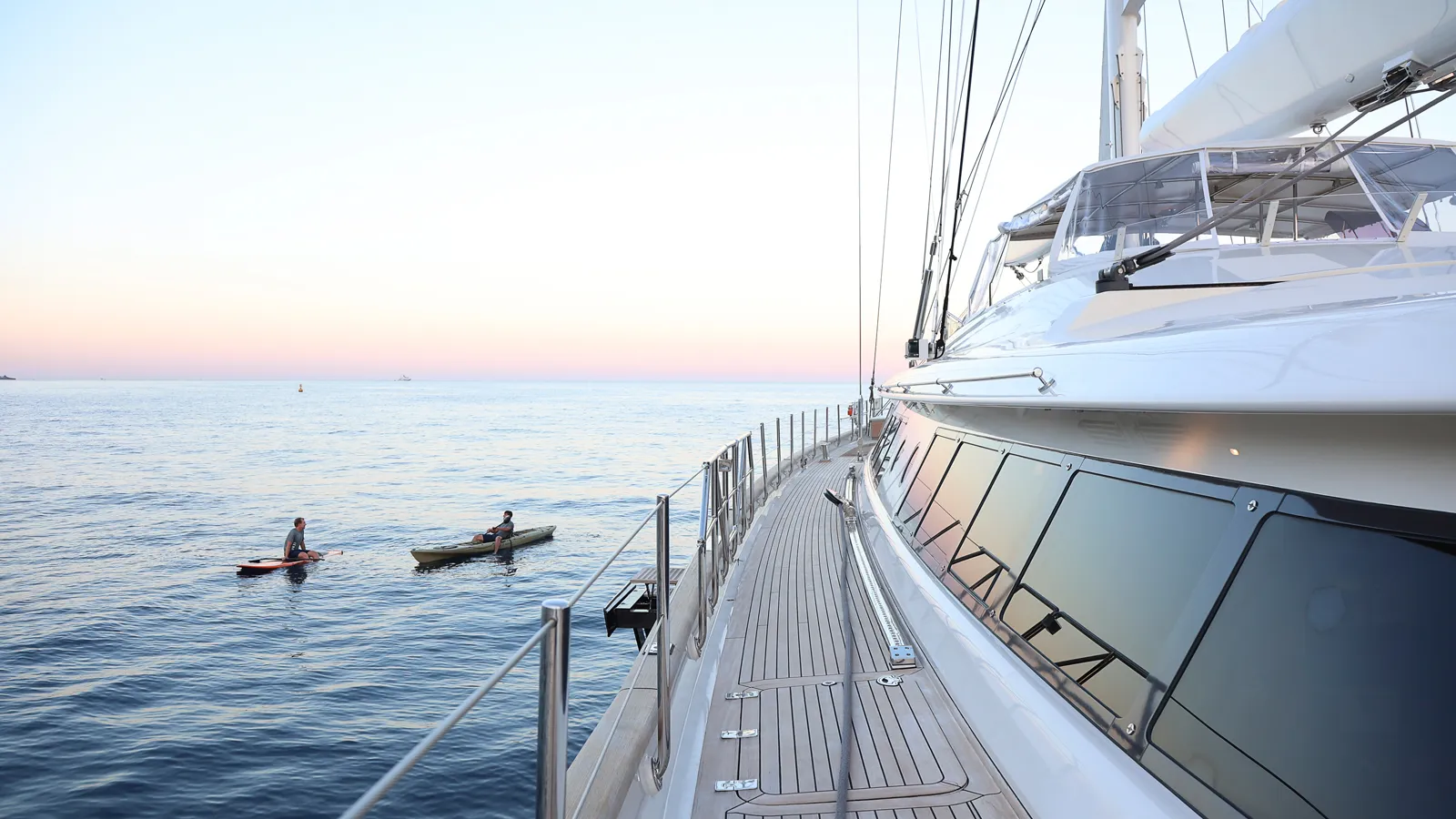 Fully equipped for water adventures, Zenji includes a 6.25m Castoldi jet tender and a 3.25m Williams jet tender for quick shore trips. Enjoy Seabobs, paddleboards, kayaks, water skis, and wakeboards for endless fun at anchor.
