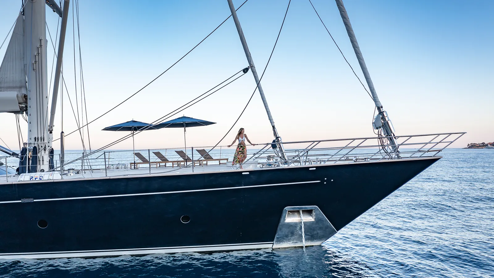 Crafted by Ron Holland and built with an aluminum structure and a teak deck, Zenji embodies the Perini Navi silhouette. This sailing ketch boasts sweeping lines that create a powerful presence on the water. Her centerboard design offers a variable draft, perfect for deep-sea adventures and shallow cruising alike.